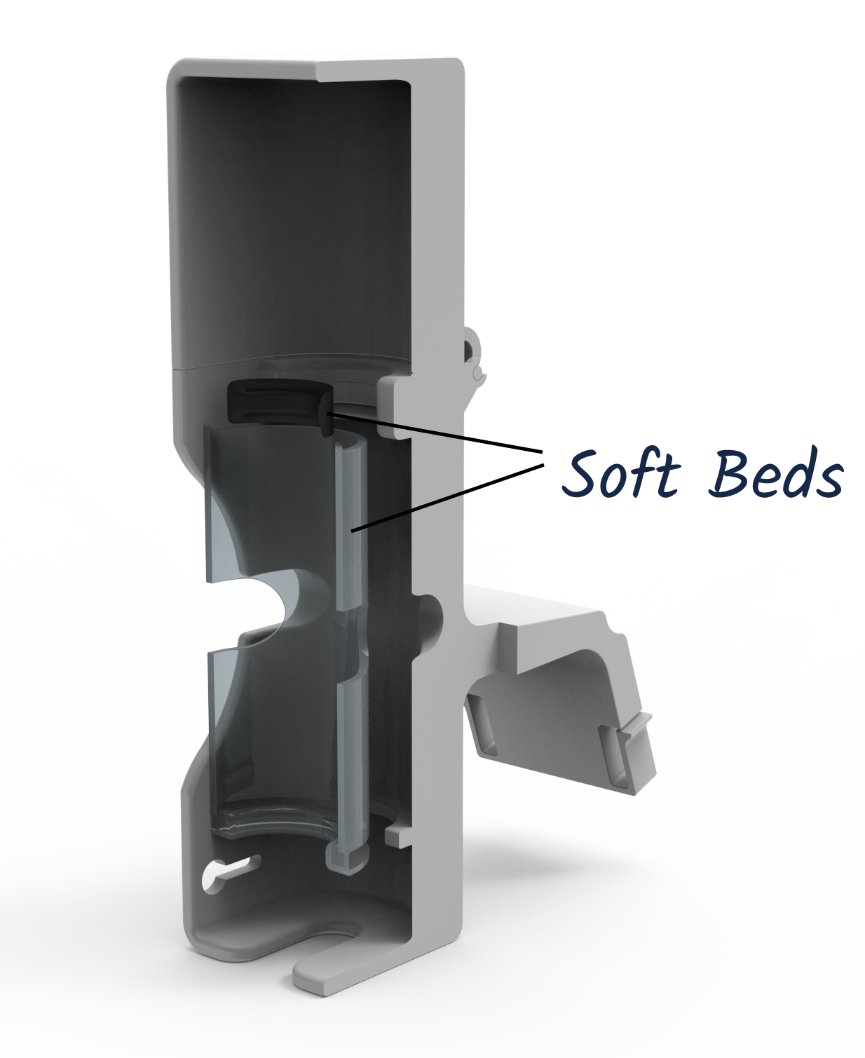 Scanner Support: 4mm snap-fit retention rails with 1-2mm protective clearance