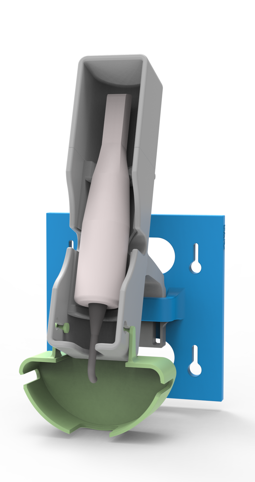 Introducing the premium 3D-printable Scanner Holder Assembly – a professionally engineered solution designed specifically for dental practitioners who demand excellence in equipment organization. This complete wall-mount system protects your valuable 3D hand scanner while keeping it immediately accessible during clinical procedures.